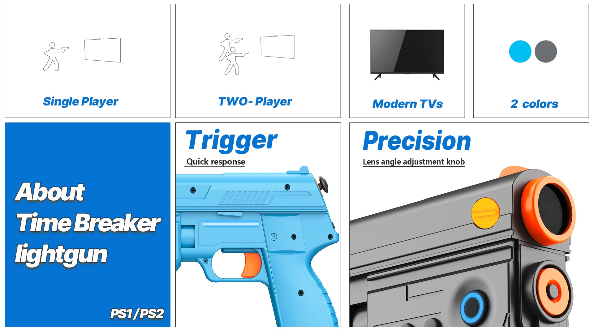 Time Breaker LightGun has built-in vibration, and sound control switch . It also has single fire and rapid fire select.
